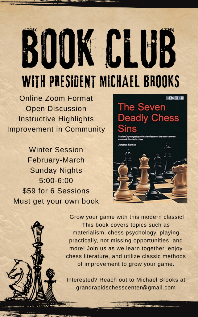 We are launching book clubs here at the Grand Rapids Chess Center and are excited to bring this to our community. These book clubs will grow with our community. What is our purpose? To combine a unique blend of learning, chess enrichment, and community all in one!